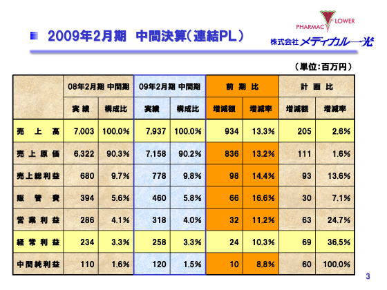 2009年2月期 中間決算説明会 2009年2月期 中間決算(連結PL)