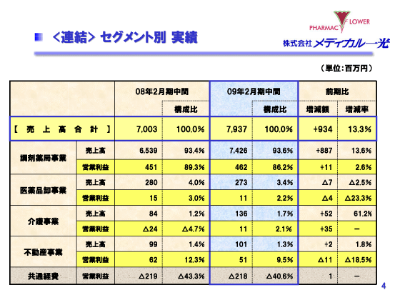 2009年2月期 中間決算説明会 <連結>セグメント別 実績
