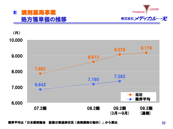 2009年2月期 決算説明会 調剤薬局事業 処方箋単価の推移