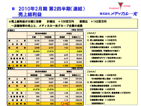 2010年2月期 第2四半期決算説明会 2010年2月期 第2四半期(連結) 売上総利益