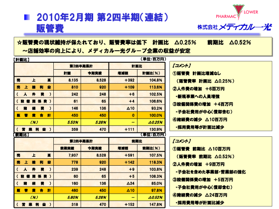 2010年2月期 第2四半期決算説明会 2010年2月期 第2四半期(連結) 販管費