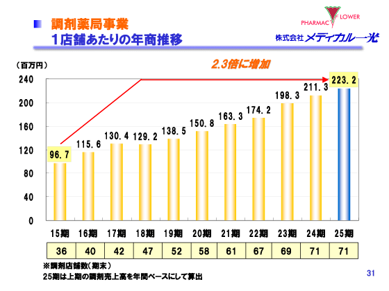 2010年2月期 第2四半期決算説明会 調剤薬局事業 1店舗あたりの年商推移