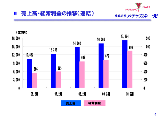 2010年2月期 決算説明会 売上高・経常利益の推移(連結)