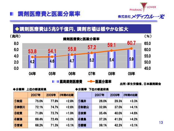 2011年2月期 第2四半期決算説明会 調剤医療費と医薬分業率