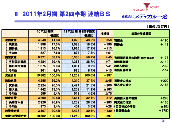 2011年2月期 第2四半期決算説明会 2011年2月期 第2四半期 連結BS