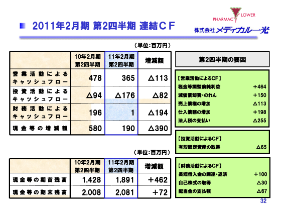 2011年2月期 第2四半期決算説明会 2011年2月期 第2四半期 連結CF