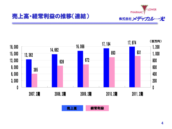 2011年2月期 決算説明会 売上高・経常利益の推移(連結)