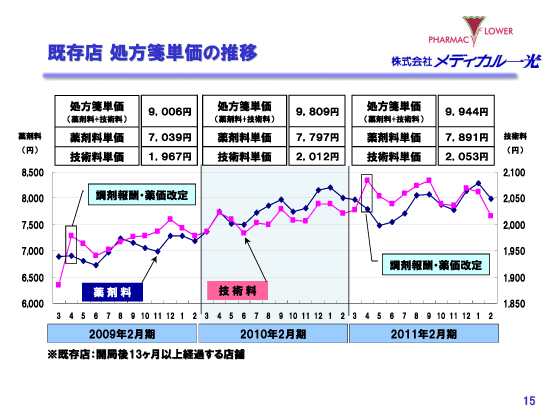 2011年2月期 決算説明会 既存店 処方箋単価の推移