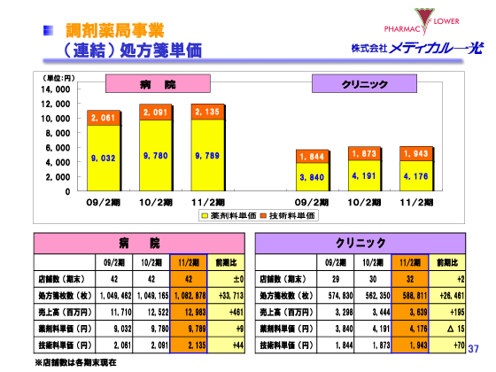 2011年2月期 決算説明会 (連結)処方箋単価(調剤薬局事業)