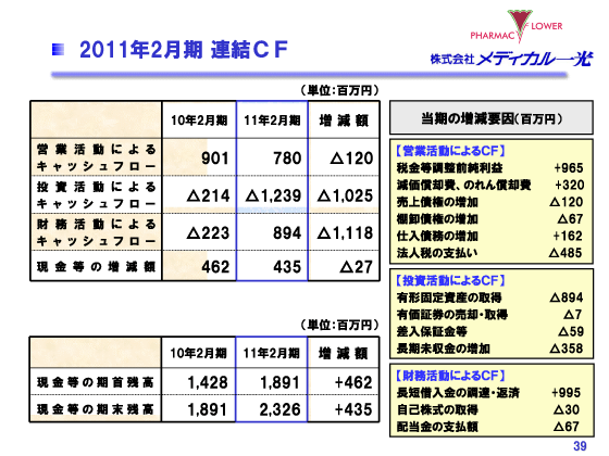 2011年2月期 決算説明会 2011年2月期連結CF