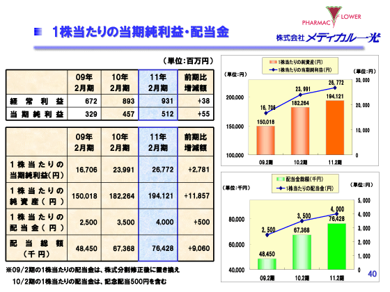 2011年2月期 決算説明会 1株当たりの当期純利益・配当金