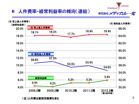 2012年2月期 第2四半期決算説明会 人件費率・経常利益率の傾向(連結)