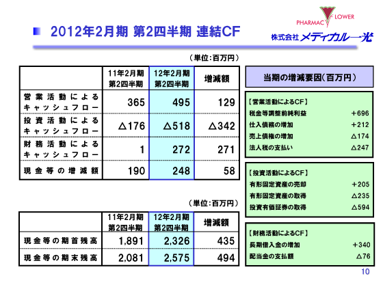 2012年2月期 第2四半期 連結CF