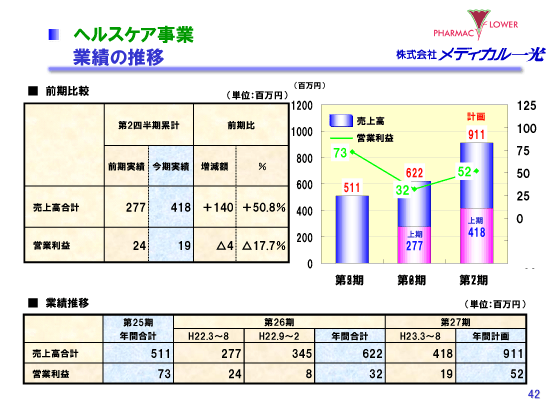 2012年2月期 第2四半期決算説明会 ヘルスケア事業 業績の推移