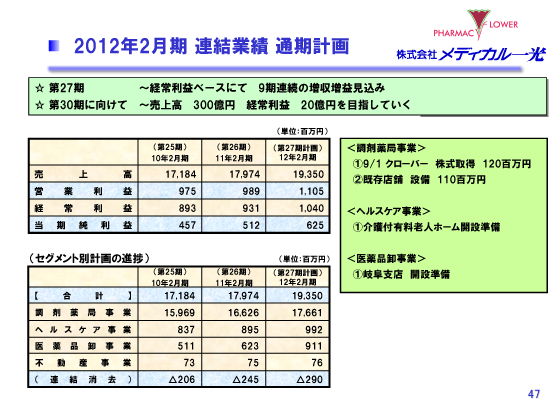 2012年2月期 連結業績 通期計画