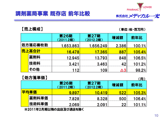2012年2月期 決算説明会 調剤薬局事業 既存店 前年比較