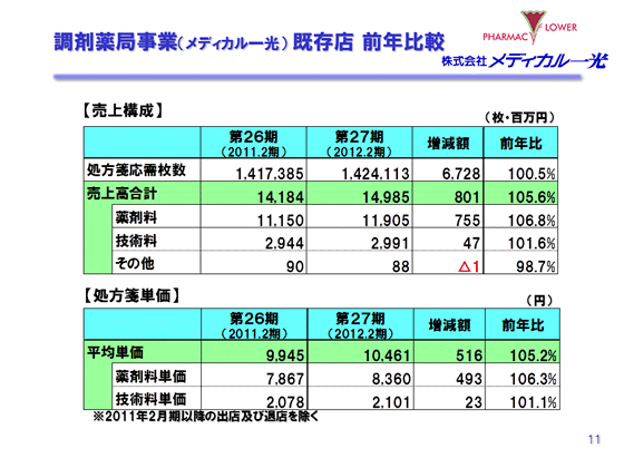 2012年2月期 決算説明会 調剤薬局事業(メディカル一光) 既存店 前年比較
