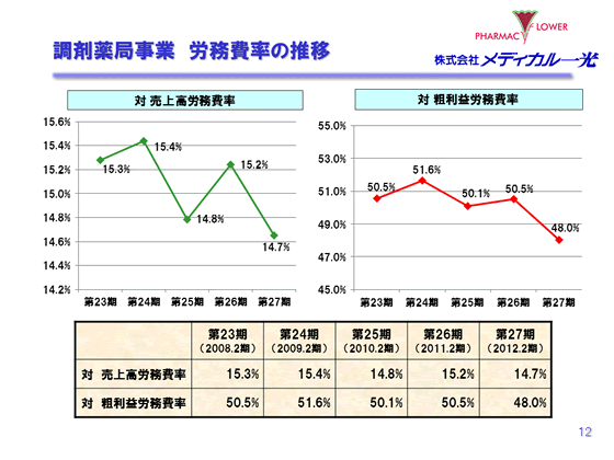 2012年2月期 決算説明会 調剤薬局事業 労務費率の推移
