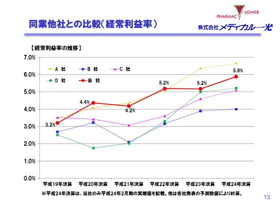 2012年2月期 決算説明会 同業他社との比較(経常利益率)