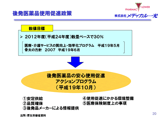 2012年2月期 決算説明会 後発医薬品使用促進政策