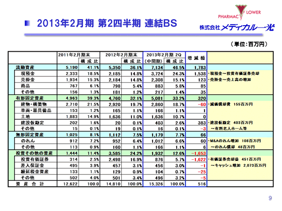 2013年2月期 第2四半期決算説明会 2013年2月期 第2四半期 連結BS