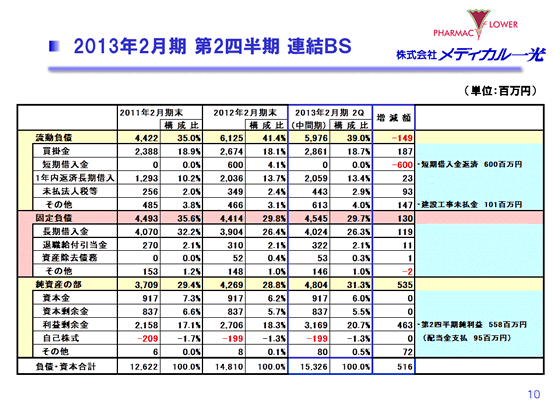 2013年2月期 第2四半期決算説明会 2013年2月期 第2四半期 連結BS