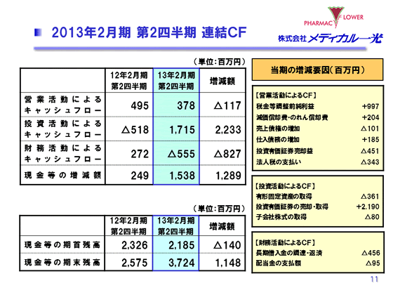 2013年2月期 第2四半期決算説明会 2013年2月期 第2四半期 連結CF