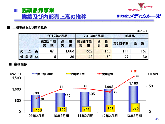 2013年2月期 第2四半期決算説明会 ヘルスケア事業 業績及び内部売上高の推移