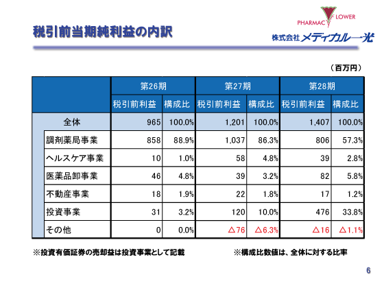 税引前当期純利益の内訳