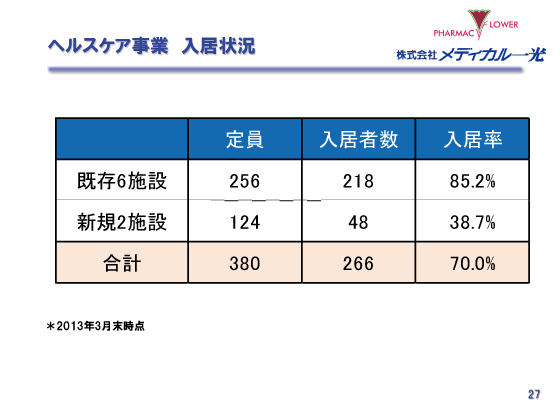 2013年2月期 決算説明会 ヘルスケア事業 入居状況