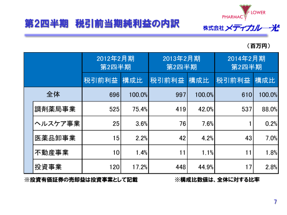 2014年2月期 第2四半期決算説明会 第2四半期 税引前当期純利益の内訳