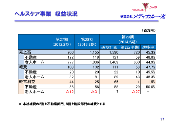 2014年2月期 第2四半期決算説明会 ヘルスケア事業 収益状況