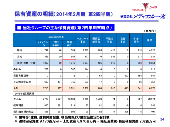 2014年2月期 第2四半期決算説明会 保有資産の明細(2014年2月 第2四半期)