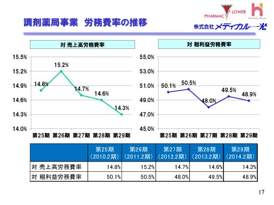 2014年2月期 決算説明会 調剤薬局事業 労務費率の推移