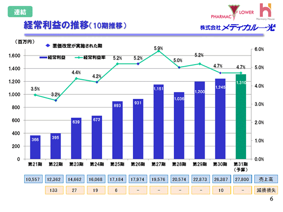 経常利益の推移(10期推移)