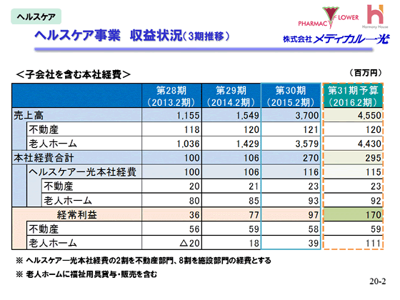 2015年2月期 決算説明会 ヘルスケア事業 収益状況(3期推移)捕捉