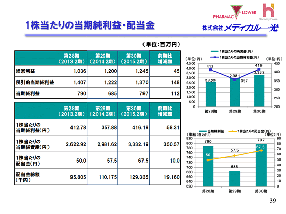 2015年2月期 決算説明会 1株当たりの当期純利益・配当金