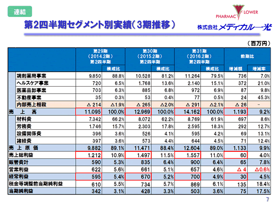 2016年2月期第2四半期 決算説明会 第2四半期セグメント別実績(3期推移)