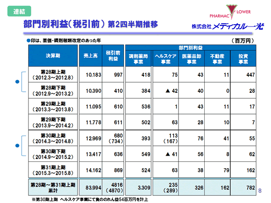 2016年2月期第2四半期 決算説明会 部門別利益(税引前) 第2四半期推移