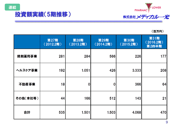 2016年2月期第2四半期 決算説明会 投資額実績(5期推移)