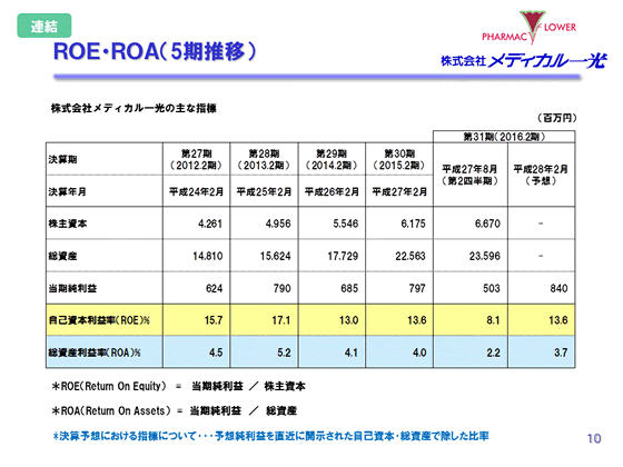 2016年2月期第2四半期 決算説明会 ROE・ROA(5期推移)