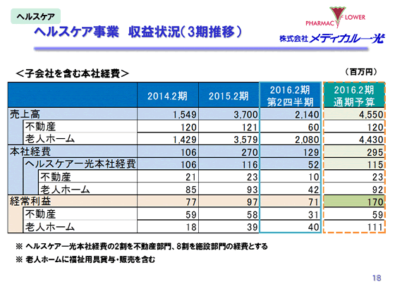 2016年2月期第2四半期 決算説明会 ヘルスケア事業 収益状況(3期推移)