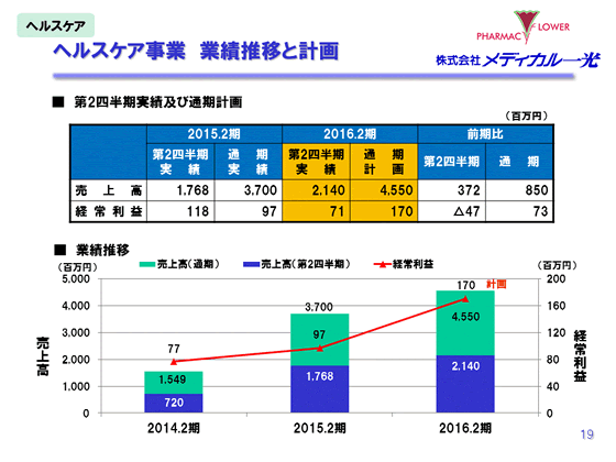 2016年2月期第2四半期 決算説明会 ヘルスケア事業 業績推移と計画