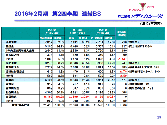 2016年2月期第2四半期 決算説明会 2016年2月期 第2四半期 連結BS