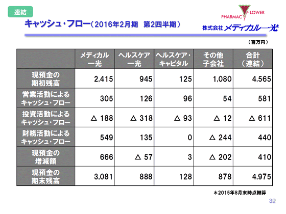 キャッシュ・フロー(2016年2月期 第2四半期)