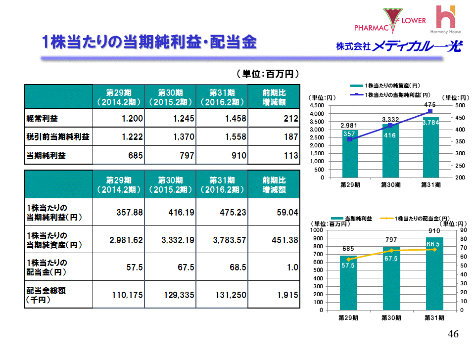 2016年2月期 決算説明会 1株当たりの当期純利益・配当金