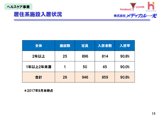 2018年2月期 第2四半期決算説明会 ヘルスケア事業 居住系施設入居状況