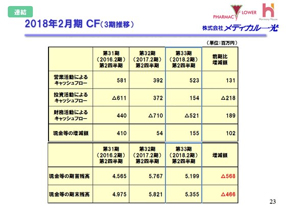 2018年2月期 第2四半期決算説明会 2018年2月期 連結CF(3期推移)