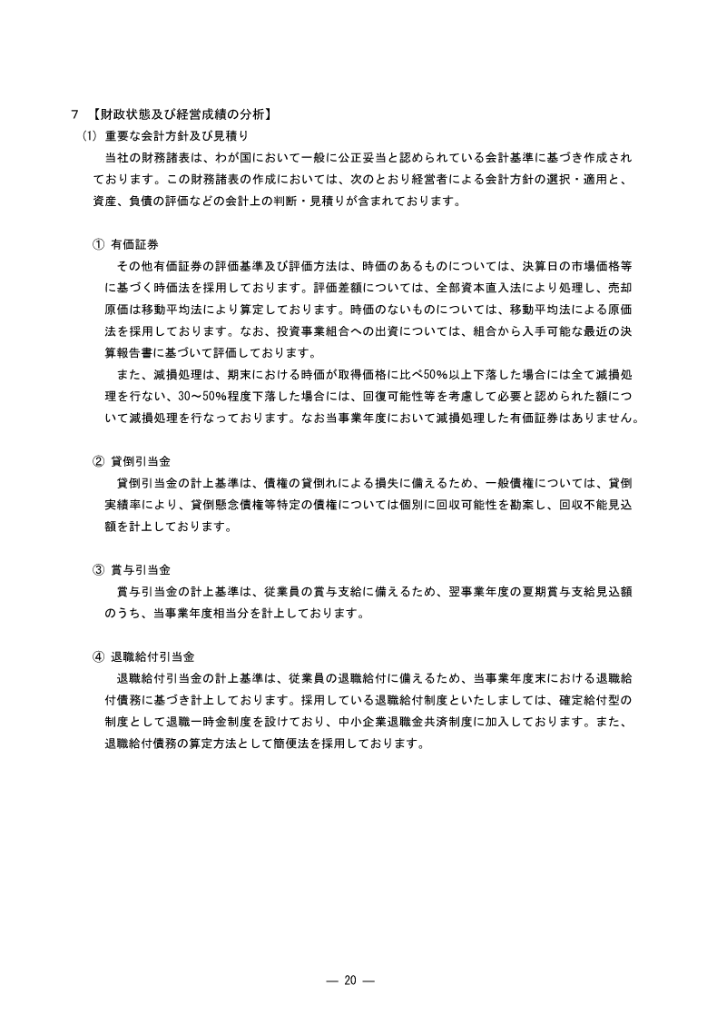 第20期 有価証券報告書 財務状態及び経営成績の分析