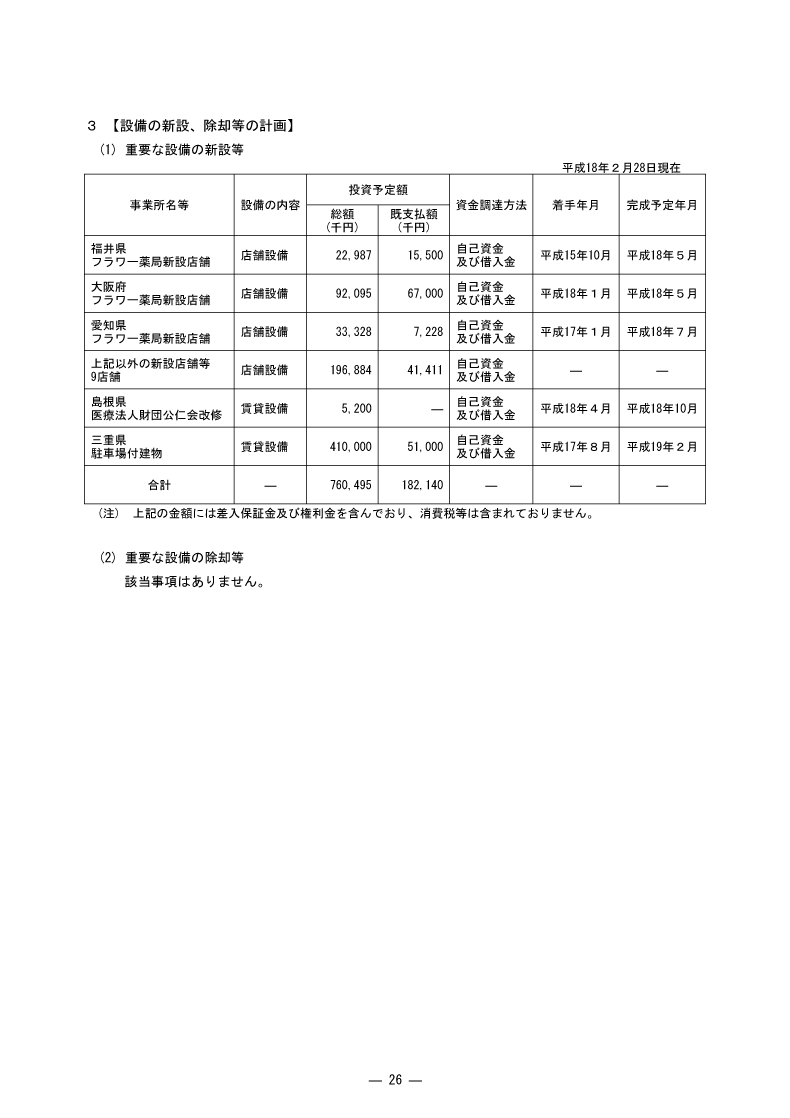 第21期 有価証券報告書 設備の新設、除却等の計画